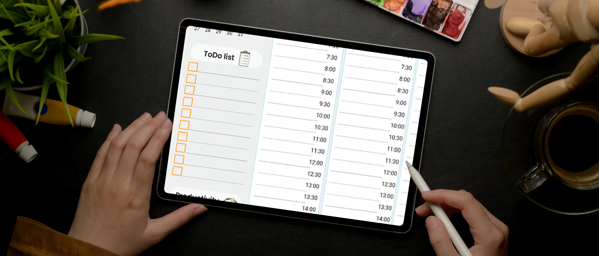 - Plan your days/weeks/months in detail with the daily/weekly/monthly view sections.